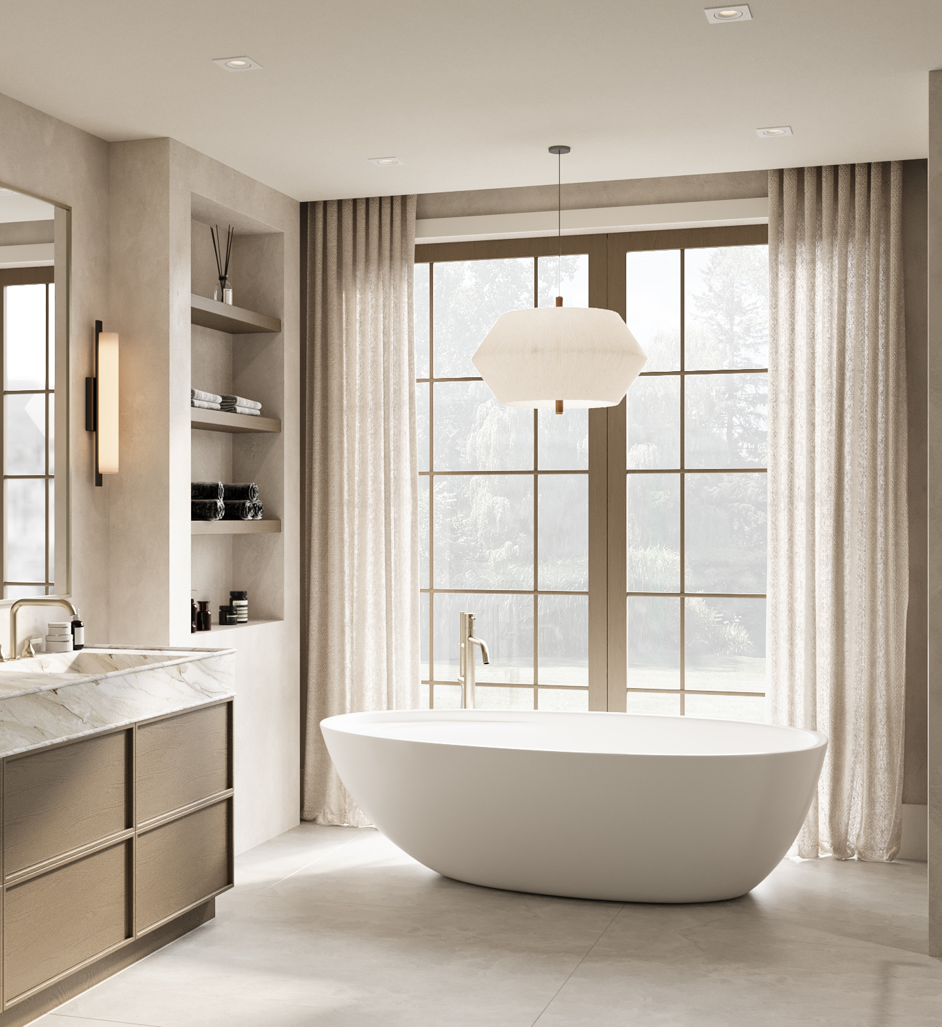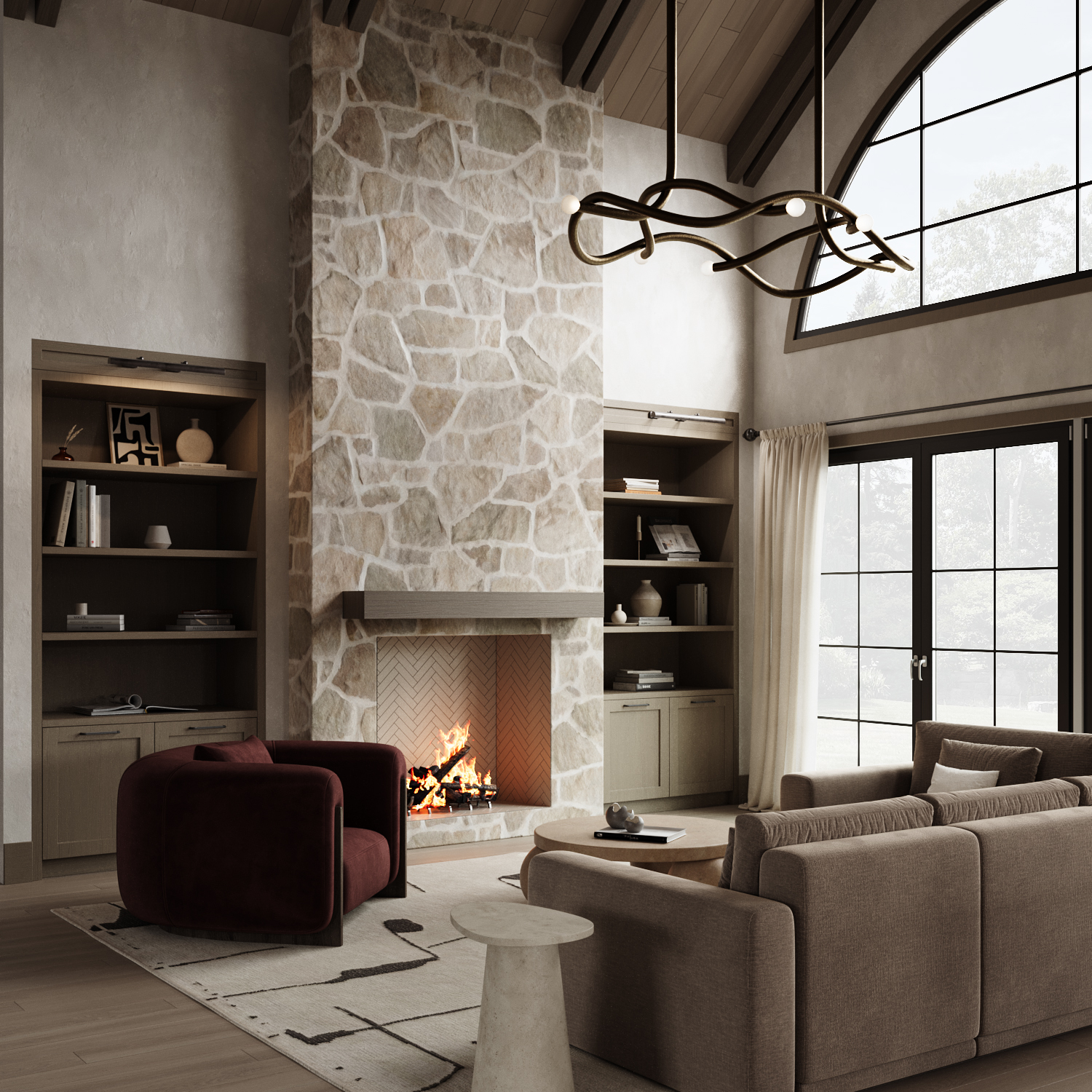 The completed home embodies modern countryside living — refined yet comfortable. Clean architectural lines coexist with organic textures, creating a space that feels grounded, intentional, and deeply connected to nature. The project stands as a balanced expression of modern continental design within Muskoka’s rural context.