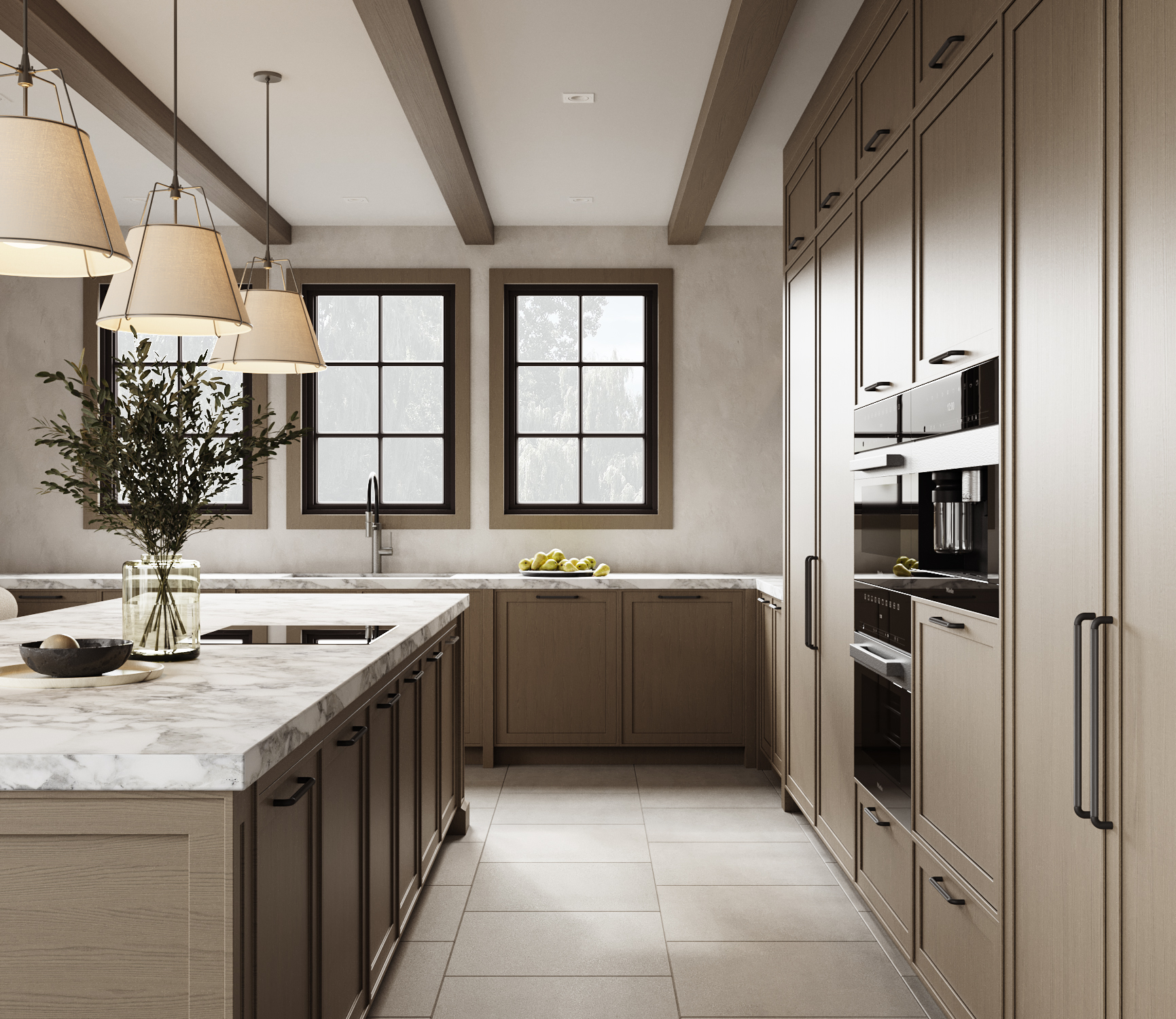 The concept focused on reimagining the traditional farmhouse through a contemporary architectural lens. Natural materials were elevated through refined detailing, while spatial planning prioritized openness, functionality, and connection to the surrounding landscape. The design approach emphasized clarity of form, subtle contrast, and a calm material palette to create a cohesive and enduring aesthetic.