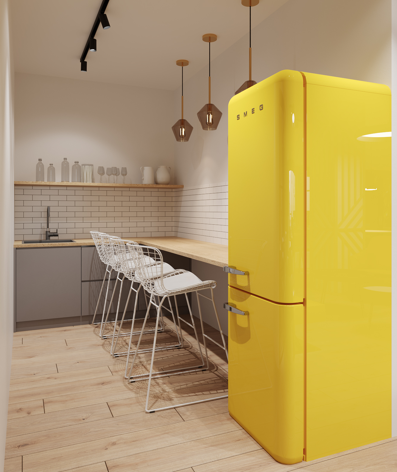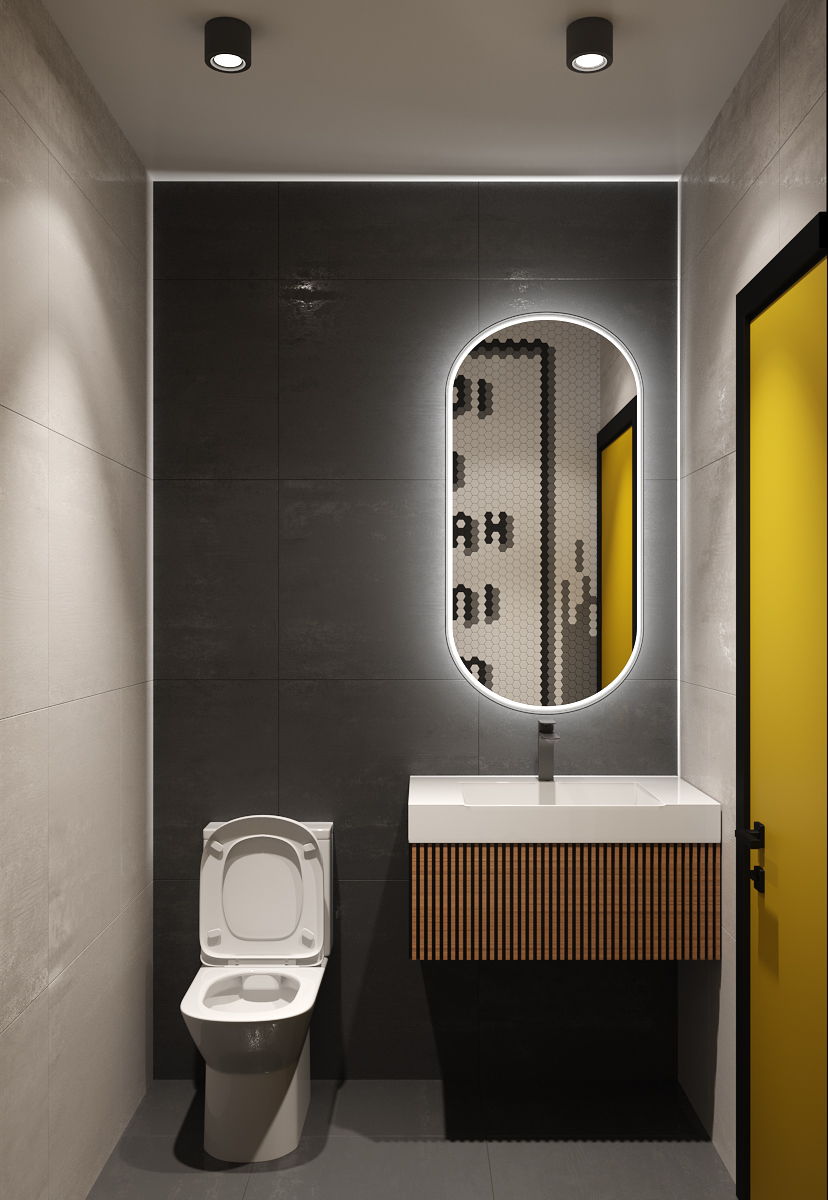 This project explores the design of a modern, creative co-working workspace where functionality, identity, and emotional impact come together. The interior was conceived as a dynamic environment that supports focused work, collaboration, and informal social interaction while maintaining a strong visual character. The design balances neutral architectural surfaces with bold yellow accents, creating an energetic yet controlled atmosphere. Yellow acts as a visual anchor throughout the space — guiding movement, defining key zones, and reinforcing brand recognition — while warm wood textures and soft gray tones provide balance and comfort.